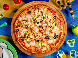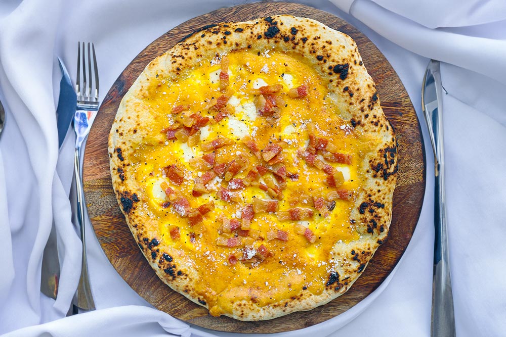 Blat pizza, sos rosii, mozzarela, sunca pui, Ou fiert, Grand Cucina, rosii
